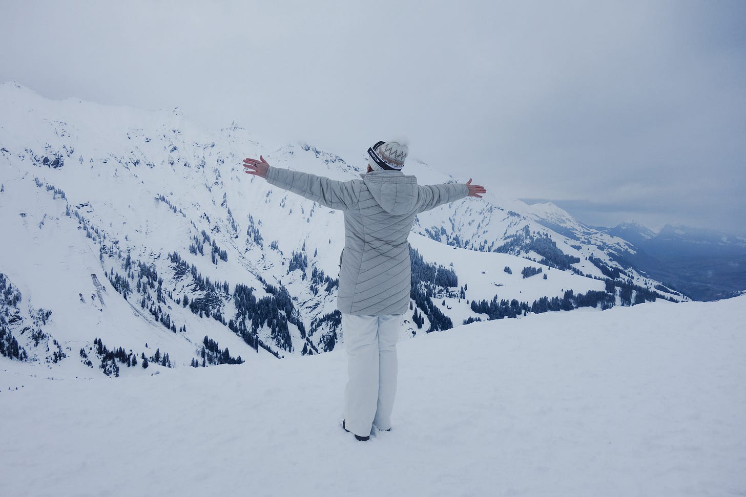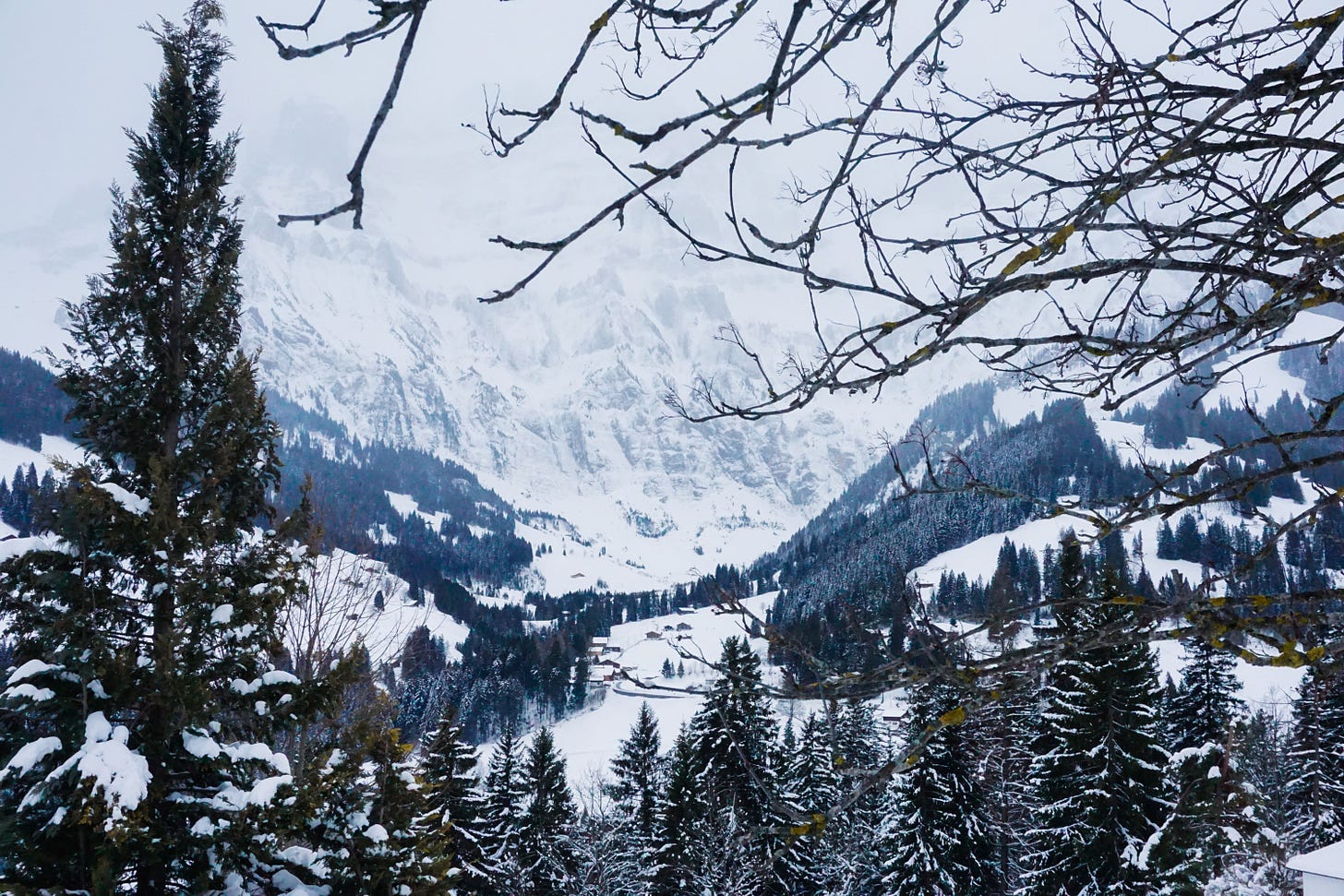 I hadn’t planned to visit to arrive in Switzerland in peak snow season. Yet there I was, stepping into a world swallowed in white. Snow layered every rooftop, every pine branch, every ridge-line. It felt like I had walked inside a blank canvas. I had asked for a fresh page this year, a clean beginning, and the mountains handed it to me in the form of endless expansive white.